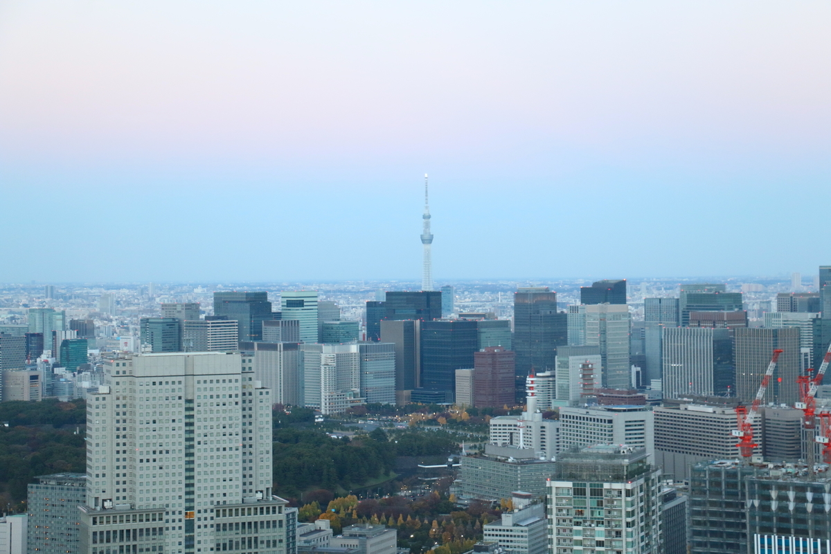 今回のお部屋の眺望は東側:皇居・スカイツリー向きでした。