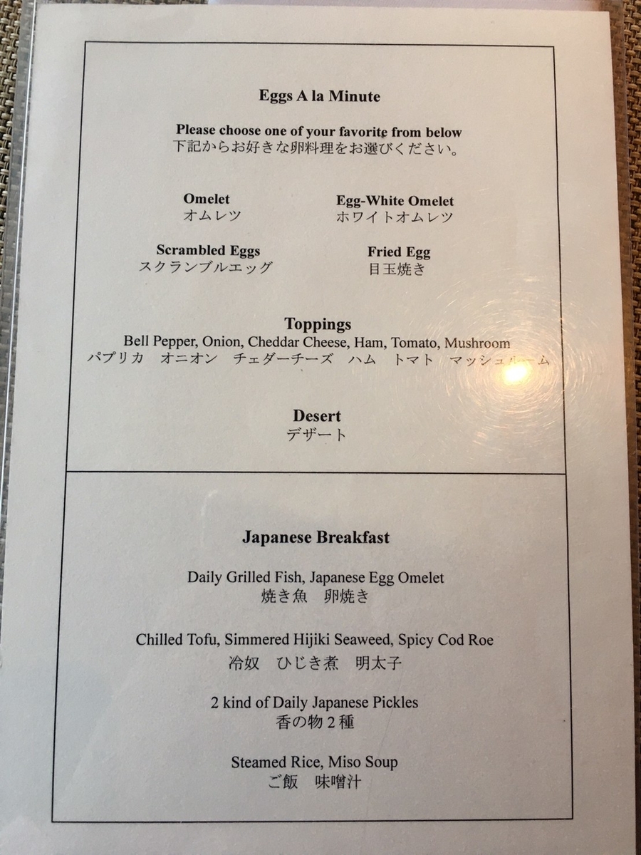 朝食は基本メニューとしてオムレツか和定食を選べます。