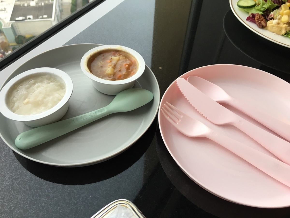 次女が離乳食中だったので、恐る恐る離乳食のことを聞いてみたところ「ご用意します!」とお返事いただき、すぐに温められた離乳食が到着。