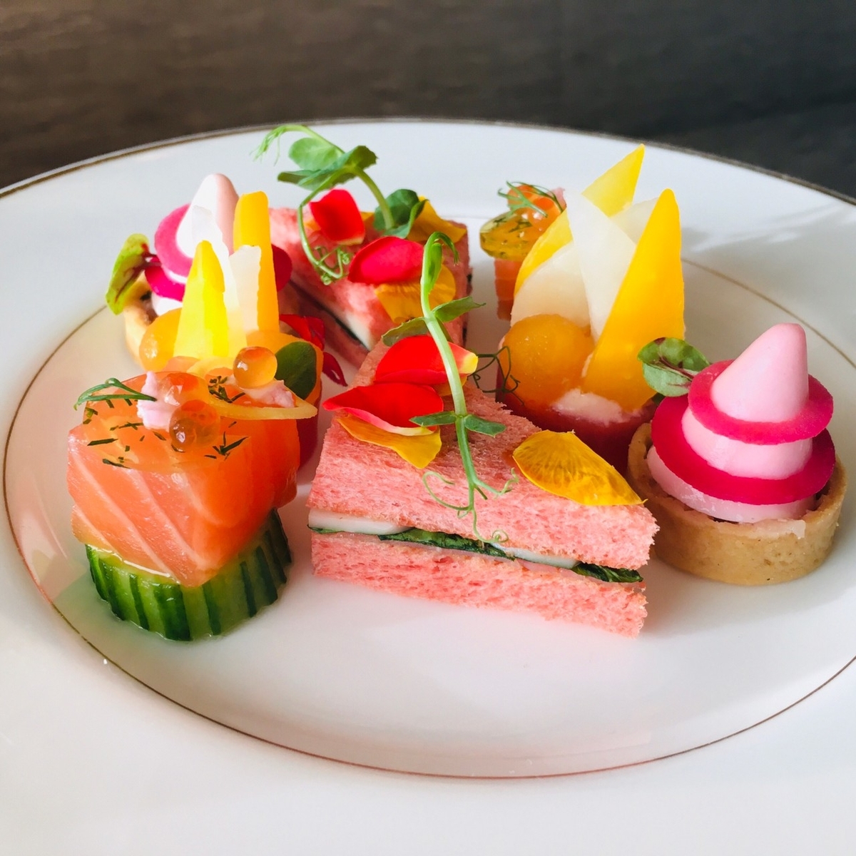 シャンパン片手に都会の高層階でアフタヌーンティー・・・贅沢です。