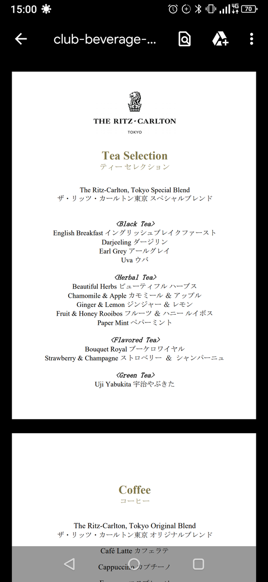 "Exclusively blended for the Club Lounge Guest of The Ritz-Carlton,Tokyo"