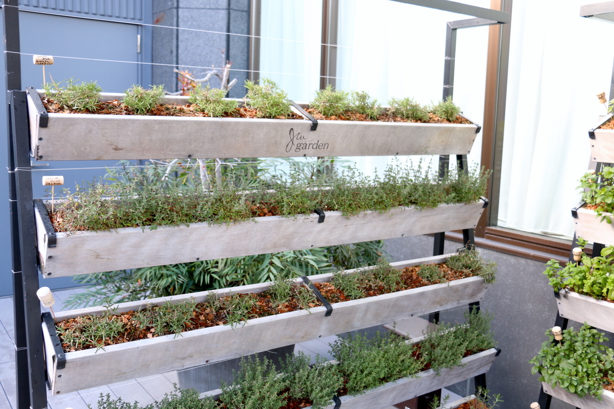 また、この通路の脇にはハーブガーデンとテイクアウト商品を食べれるようなテラステーブルがあります。