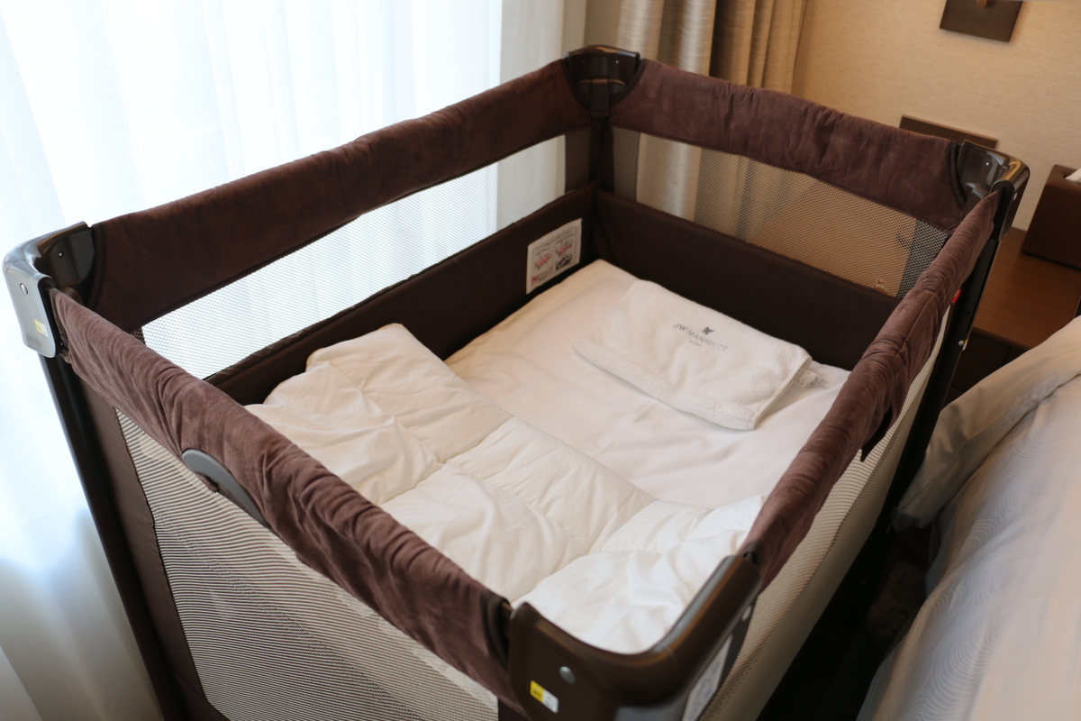 今回はあかちゃん連れだったので無料のベビーベッドをリクエスト。
