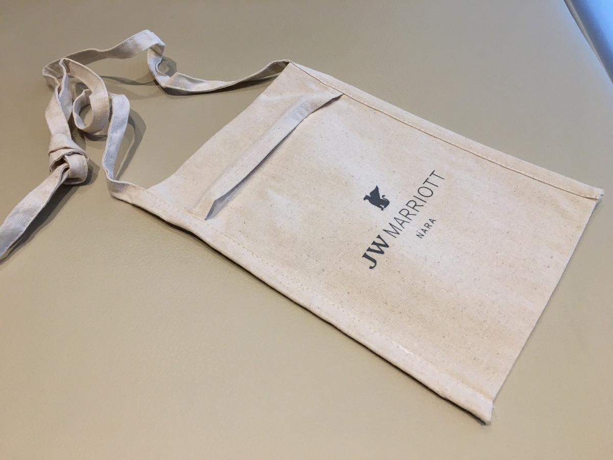 ミッションをクリアすると奈良マリオットロゴ入りの麻のポーチをプレゼント!