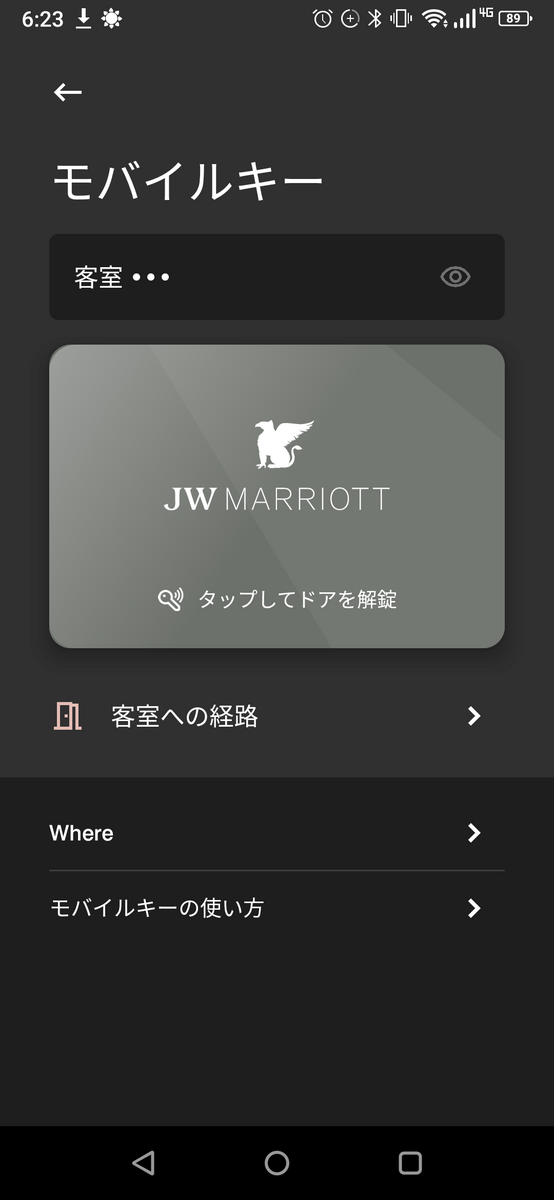 ルームキーは普通にもらえますが、モバイルキーも利用可能です。