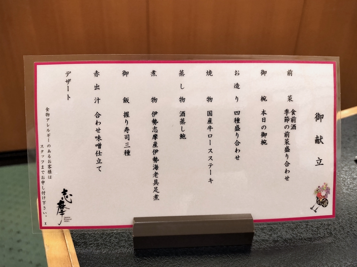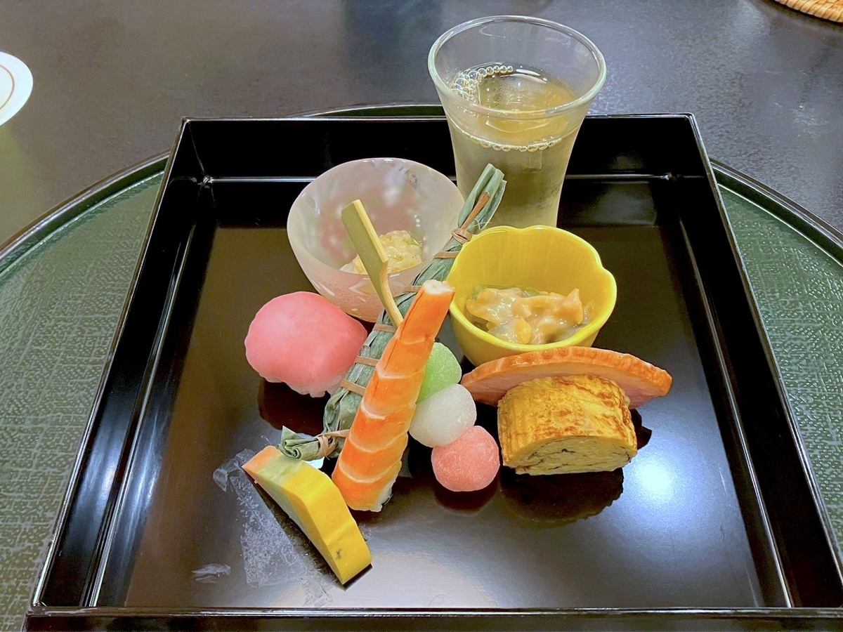 2食付きは基本的に4,200円の里海御膳か6,600円の寿司会席になりますが、今回は「30周年特別会席コース」プランしか空きがなく、13,310円の潮騒コースをベースにしたお食事をいただきました。