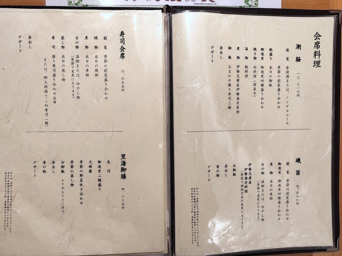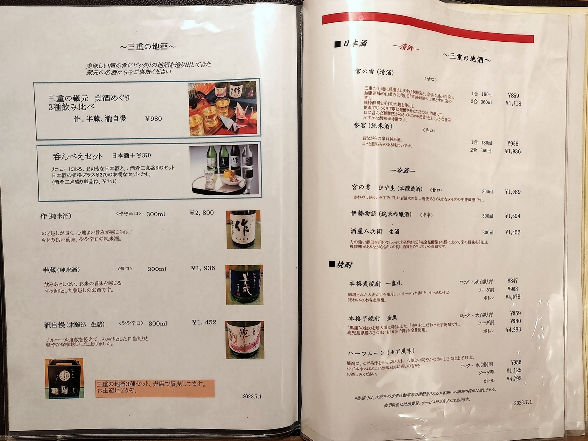 特別メニューアピールはなくて「潮騒」のお品書きままです。